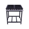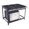 Origen Brasil. Gás en GLP de baja presión. Estructura en chapa con pintura epoxi. Tubo de distribución de 3/4″. Quemadores y parrilas en hierro fundido 30x30cm. Quemador simple en 100mm potencia 1938Kcal/h. Quemador doble en 160mm, potencia 4959Kcal/h. Opción Horno. Puerta de vidrio templado. Medida externa 440x580x535. Medida interna 275x505x440.