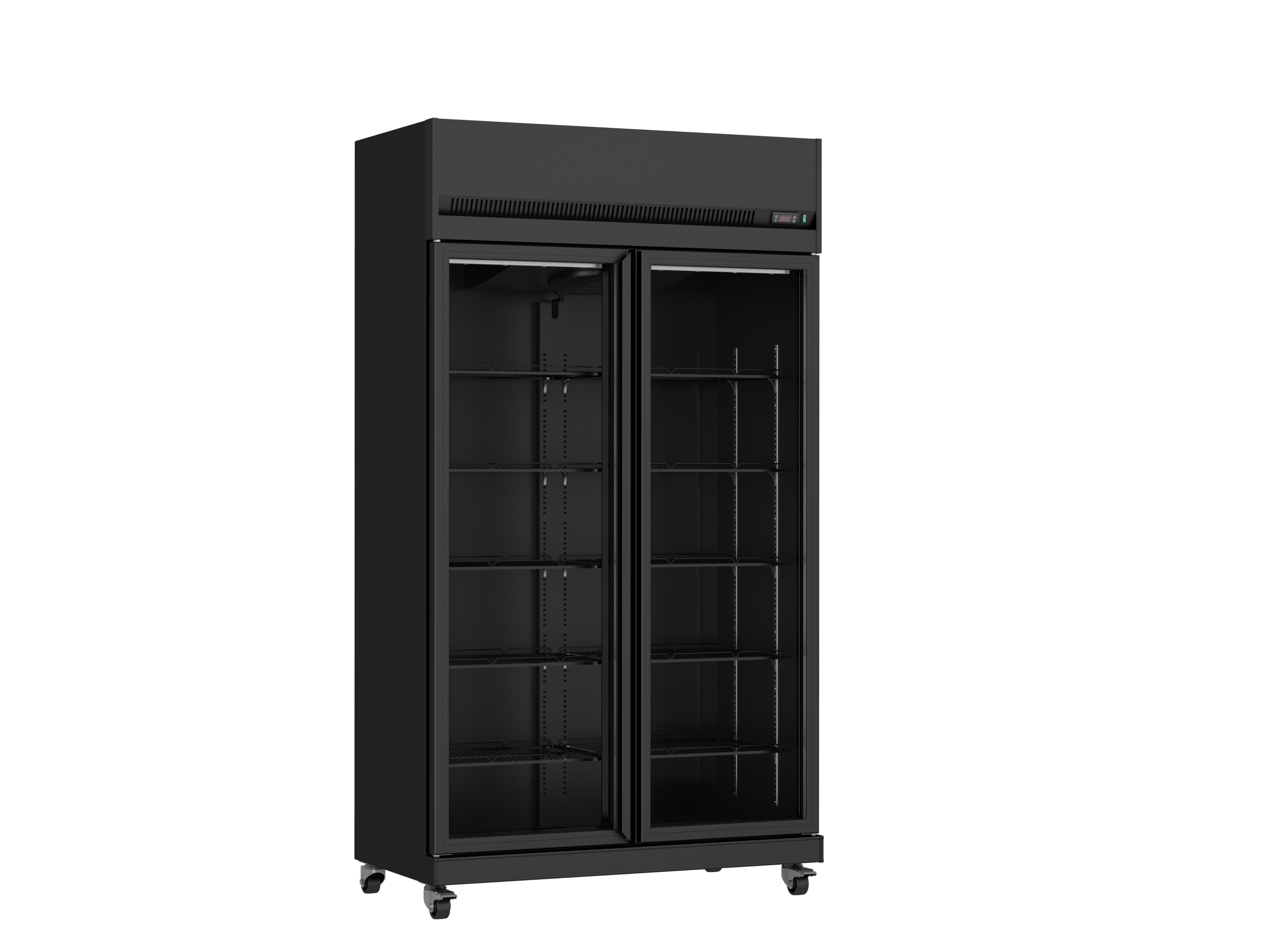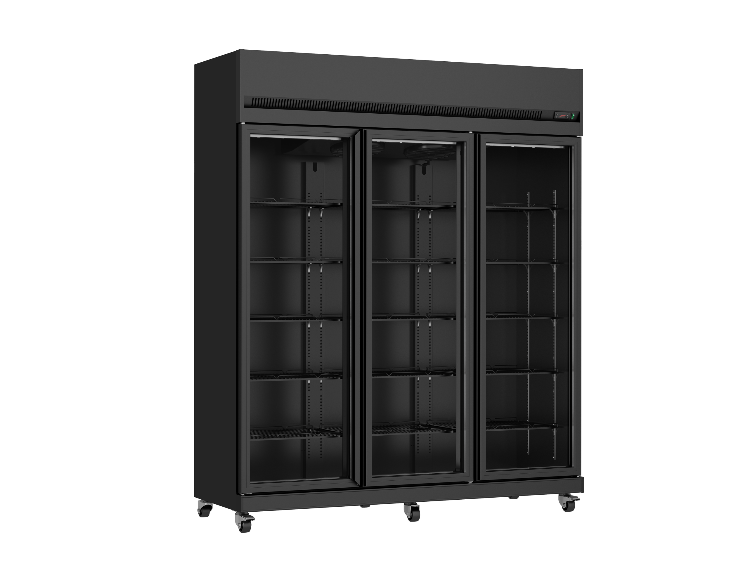 EXPOSITOR DOS PUERTAS _Marca Iccold. _Modelo VFC-DD110 _Medidas exteriores 1.10 frente x 0.62 profundidad x 2.00 alto. _Volumen 770 lts _Estantes de 50 x 38, cantidad 10. _Cubierta superior iluminada para colocar publicidad. _Doble acristalamiento, puerta de vidrio templado con cierre automático. _Temperatura de trabajo de 1 °C a 10°C. _Aire forzado / frio seco. _Controlador digital de temperatura. _Color negro en su exterior e interior. Expositor tres puertas _Marca Iccold. _Modelo VFC-DT165 _Medidas exteriores 1.65 frente x 0.62 profundidad x 2.00 alto. _Volumen 1181 lts _Estantes de 50 x 38, cantidad 10. _Estantes de 52 x 38, cantidad 5. _Cubierta superior iluminada para colocar publicidad. _Doble acristalamiento, puerta de vidrio templado con cierre automático. _Temperatura de trabajo de 1 °C a 10°C. _Aire forzado / frio seco. _Controlador digital de temperatura. _Color negro en su exterior e interior.